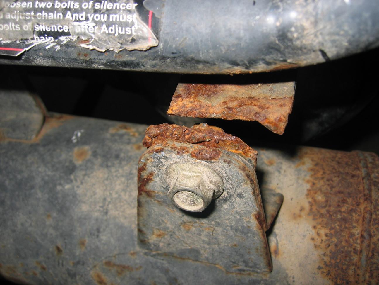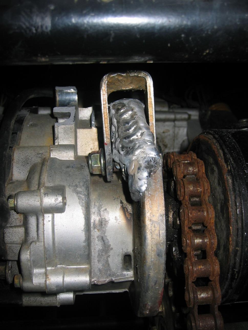 The reason the muffler mounts cracked probably (besides the bubble-gum quality welding), was that the exhaust system was rigidly bolted to the motor, and also to the frame via these welds. So the muffler welds were functioning as a motor mount of sorts. (Bad design, IMO, I did inform the customer.)