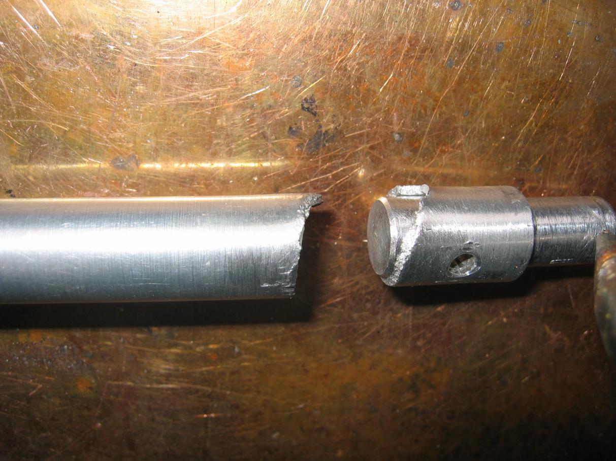 Here is how it looked before welding. I solvent washed it clean (it was quite dirty and also oily from the piston oil lubrication) and wire brushed the end a little before welding.