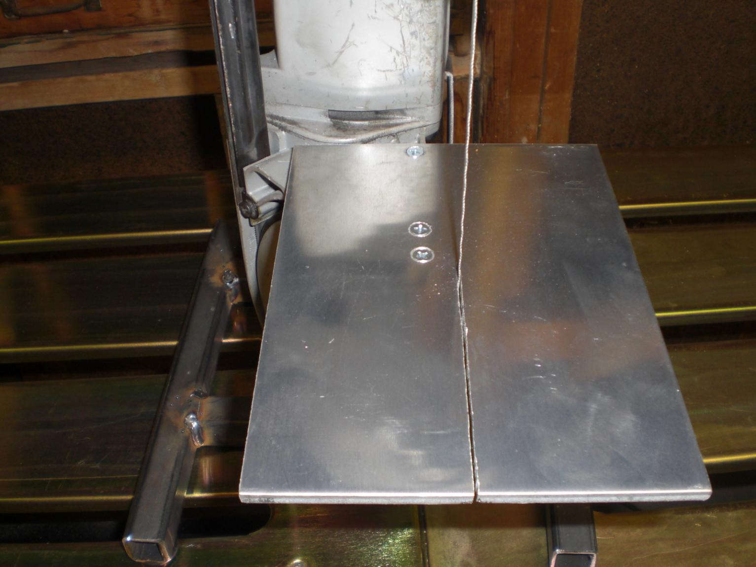 I got this aluminum plate from the scrap pile at my steel store. It was 1/4 inch and should be long enough to catch the rear bold hole from from the original guide plate. it should not be thinner than 1/4 inch as you have to counter sink 3 #10/24 bolts to hold it to the blade guard. you won't be able to reuse the existing bolts unless you go really thick.(they are Pan Head) I suggest taping the old bolts to the old base plate and putting it somewhere safe in case you ever need to go portable again....