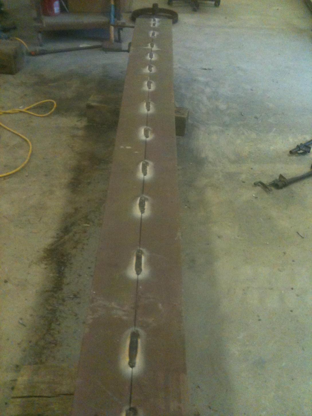 Well ive got around to post the start of a log splitter me and my cousin have been building. This is for one of our skid loaders. The first step was to start finding the metal for it. We had that cylinder. It came out of a missal silo. Its got a 4 ft stroke and 5 in diameter. Its a bit of an overkill but got it for free. The hardest part was the I-beam. One I-beam wouldnt be enough unless getting a real big one. we were afraid it would start to twist on us. Thought about boxing one in on each side but decided better yet just weld 2 together side by side. We were looking for a 8" tall by 4" wide for it because it would be plenty strong but couldnt find anything quick enough. We ended up using one we had out back. It was a little too big for two side by side but too small for just one. So far we have got them welded together, made a push block, made the big main wedge and welded it on some, and modified the beam some to hold the cylinder. Ive got several hours of welding and cutting in it so far. Still got a lot too go. Its got a good start on it. Ive been doing all the welding with the everlast powerarc 200 except the push block which i was trying to use our miller 251 mig but i got tired of messing with it and it messing up. The push plate may of been a bit of overkill because its 1 5/8" metal but we wanted something that wouldnt ever bend. Heres some pics of whats done so far.