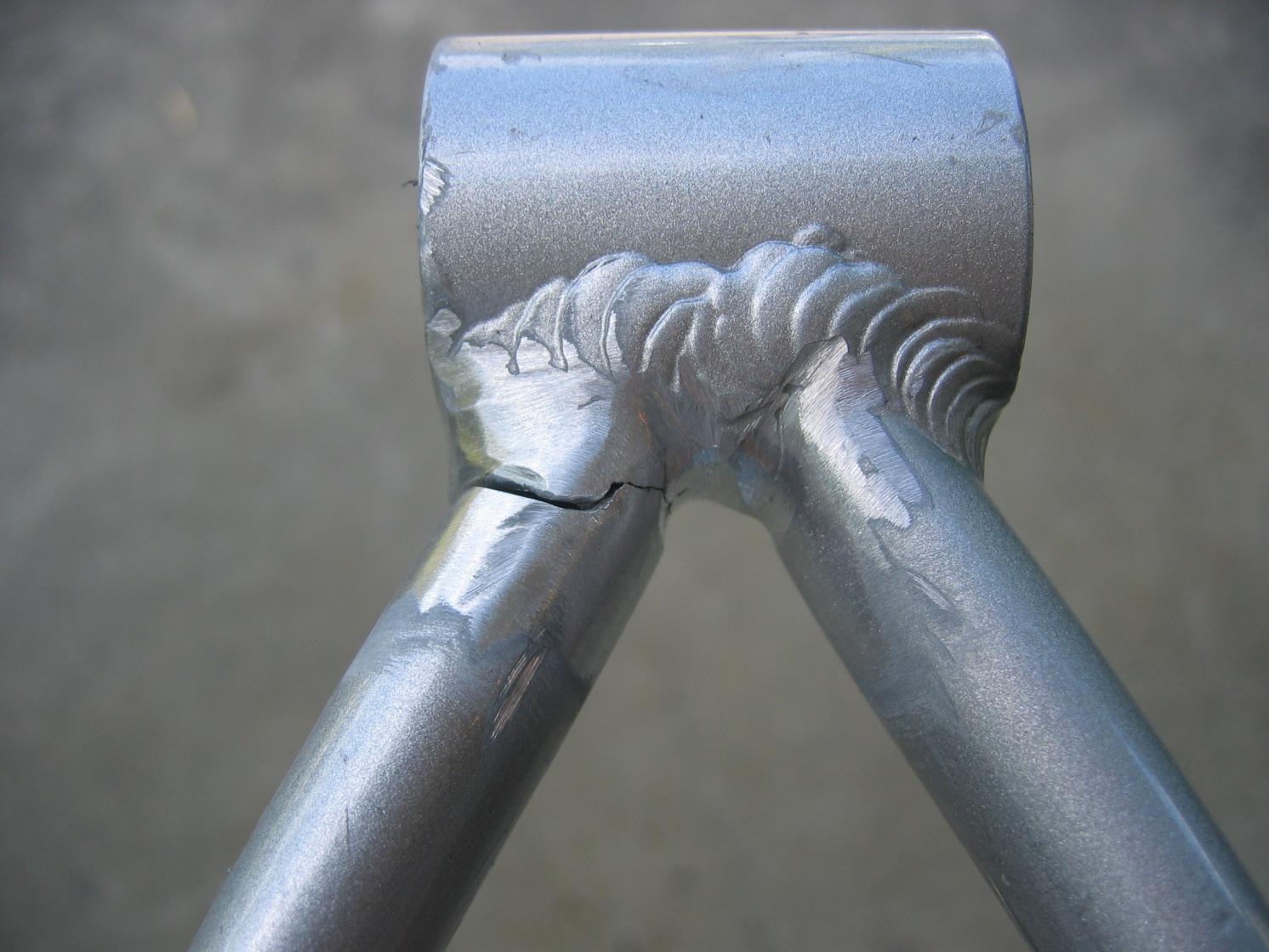 It is tubular aluminum, probably about .065" thick, and it cracked where one of two slender tubes met a large, thicker aluminum piece.