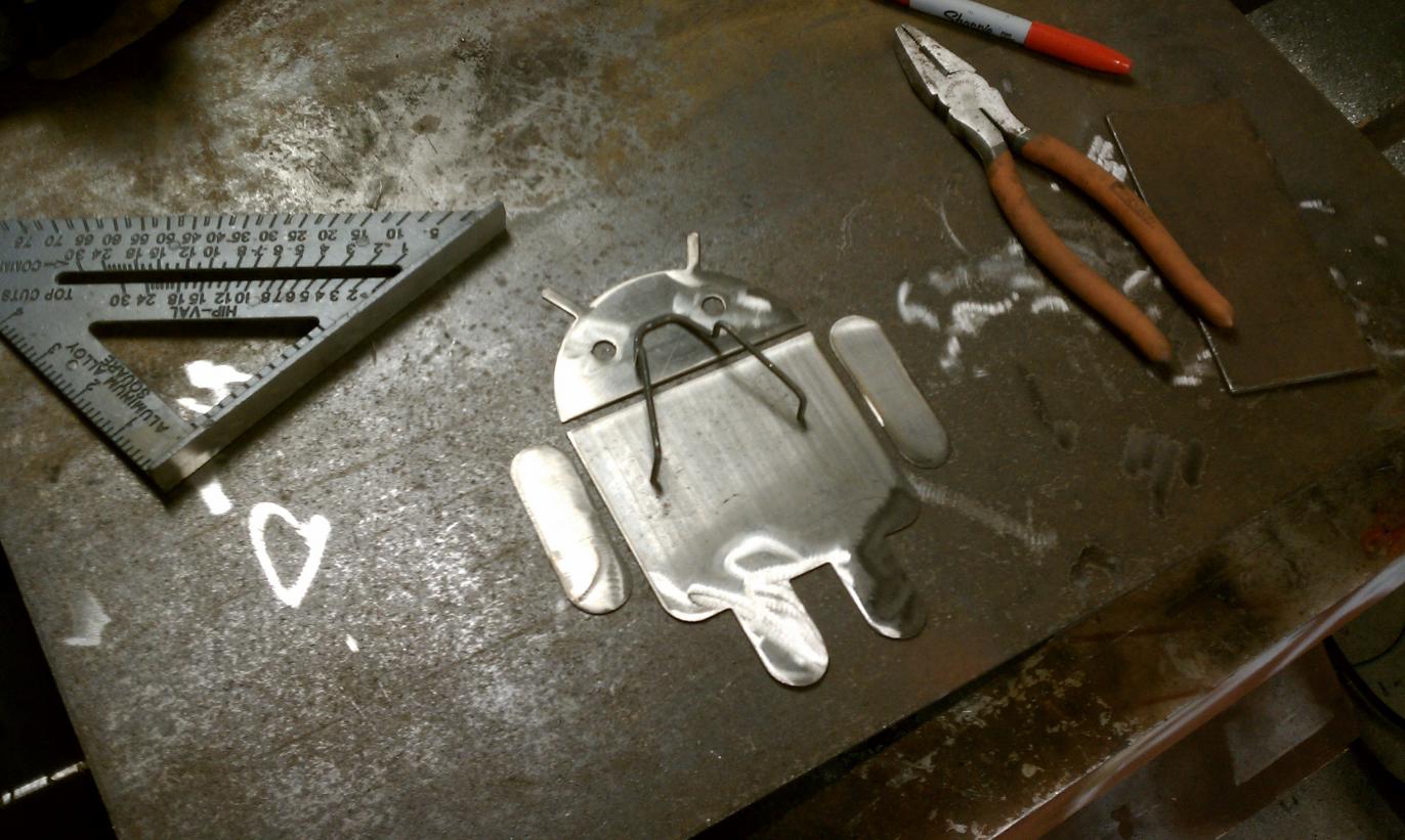 I made this little guy for a buddy of mine for his birthday. He's a high-tech guy who knows all about phone and computers. Its made from some thin stainless I had laying around. It was cut out on my CNC plasma table using the PP-50. I bend some 1/8" round bar for the supports on the back. After I welded up the supports, put a sanding disk on the grinder and polished up a little. Let me know what you think about it.