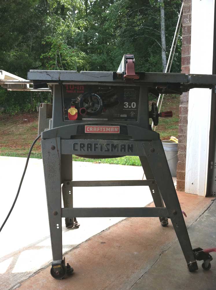 My poor old table saw was on it's last leg and liked to break dance after some idiot decided to sit on it one day (I'll be nice and not say who... but if I ever see my brick mason on the side of the road with a flat... I'll blow the horn and wave....) The actual bottom of the table saw is made out of plastic and is now cracked. This allows the metal legs to "flop" around. Not too safe... So rather than throwing it away and buying another I decided to tack the legs in hops that that would stabilize it enough to last for a few more years.