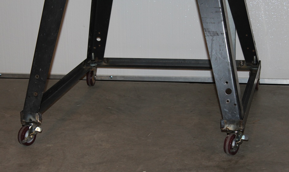 My radial arm saw is an old Craftsman that I bought at a yard sale, probably late 70's or early 80's vintage. The retractable casters on the base are a crappy design (in my opinion) were beat up and barely functional before I got it, and that was 7 years ago. It's always a chore trying to move the saw around the garage because the stand is so flexy, the caster design sucks, and the wheels themselves are horrible, so it's generally not convenient to use.