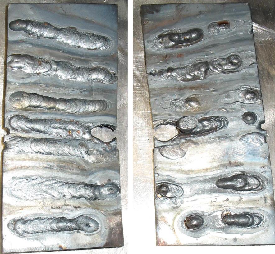 Hi folks. I've had this welder for about a year. I have the foot pedal. I started with 1/8 hot rolled steel, cleaned off the mill scale, wiped it down with acetone and am practicing beads. I'm using a 3/32" thoriated tungsten and 3/32" ER70S2 filler rod. For this welder if the foot pedal is attached the amp control on the welder doesn't do anything. I did some welds with the foot pedal then switched to the trigger, setting the power at 130 and then 120 amps, to eliminate me and the foot pedal for 1 variable. I started with a copper piece between my scraps and the welding table and then switched to use small pieces of angle iron, to elminate the copper sheet as a heat sink and how it might serve as a backing plate. I either get somewhat decent ripples on the front and what I think to be poor penetration in the back or I end up too hot. I'm left handed so I travel from left to right. When I was welding without the foot pedal there's more problems at the end on the right side when things get too hot. I've posted pictures of the welder knob settings, my table setup, and 4 pictures front and back of each piece. In case it isn't clear from the picture pulse is turned off. I'd like to hear suggestions and questions to get better at this. I'm trying to figure out everything (arc length, heat settings, travel speed). Thanks a lot folks.