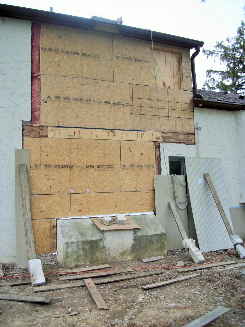In addition the stucco was applied directly to the fiber sheeting. There's no water/vapor barrier to speak of. And, they applied the stucco all the way down the foundation to 1.5 feet below grade.