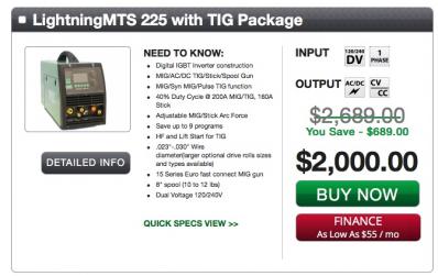New Everlast Lightning MTS 225 w/ AC/DC TIG & LCD Screen: Only $2000
