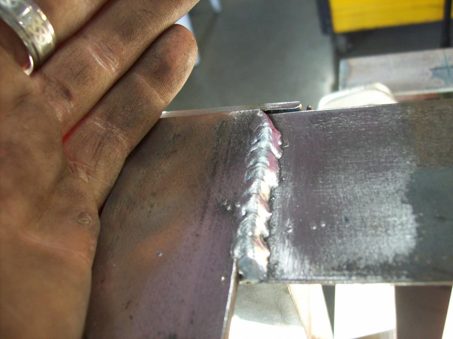 Attachment 949Attachment 950Attachment 951Attachment 952Attachment 953Attachment 960Attachment 959Attachment 957Attachment 958Well here it is. I was amazed at some of the welds this machine made today. I am serious. I took some pics. Some of them look just awesome like tig welds almost. In the pics you can see some of the welds, also the cart I put together. It still needs a few minor touches and paint but I'm proud of the way the bottle holder worked out. I know lots of guys could do better, but after three years of not touching a piece of angle, it's coming back slowly. I would like to trade the plywood shelf in on some metal but I tend to use things that have outlive their usefulness.
