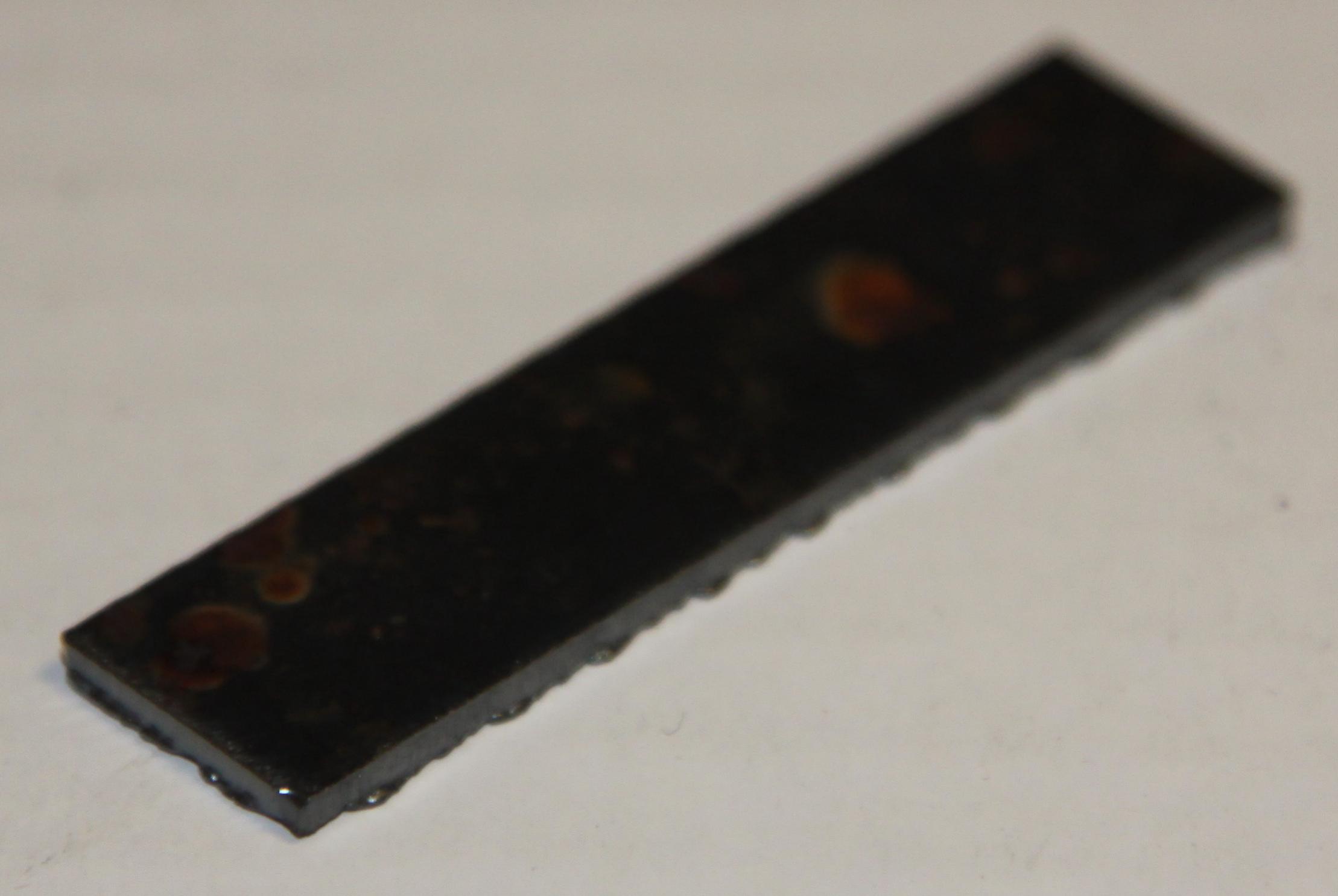 The test setup is shown above. I cut a 2” long rectangle. The difference in height from one end of the rectangle to the other is 0.43 inches.
