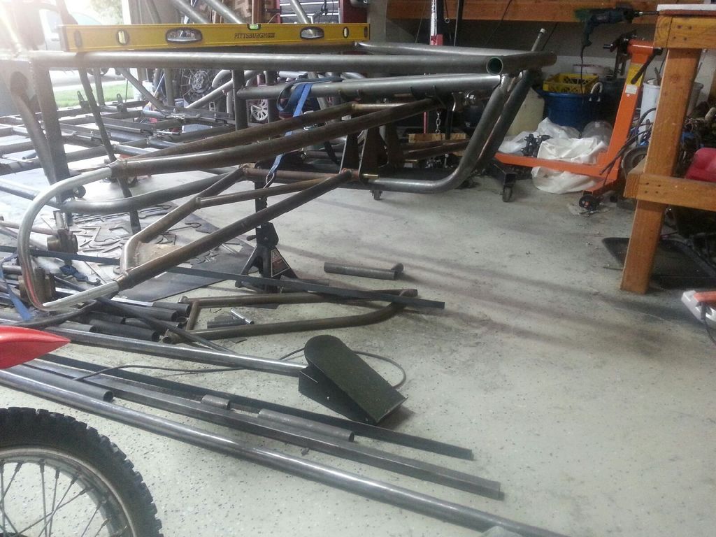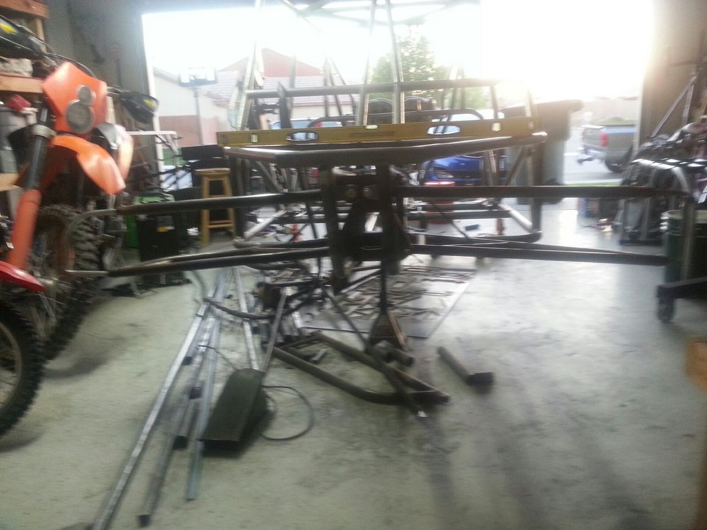 The next part of the project was going to be building up a frame jig out of 2x2 steel tube. Just so happens the guy I bought the A-arm from has one made for his rail and he is letting me borrow it. Its a pretty nice 4x10 foot table, all 2x2 inch square tube with leveling feet and castors built in. Will save me at least a couple hundred on tubing and a bunch of time not worrying about making a straight table. I should be able to start cutting and welding in the new frame next week.
