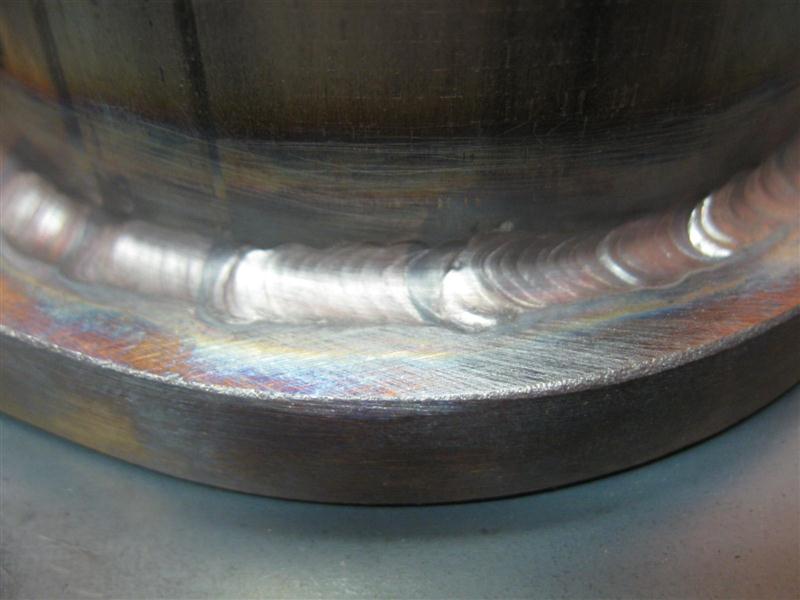 welded this part up with ~ 70-77 max amps, with the footpedal controlling the heat input, i was having a bit of a struggle getting it to melt into the flange with less amps.
