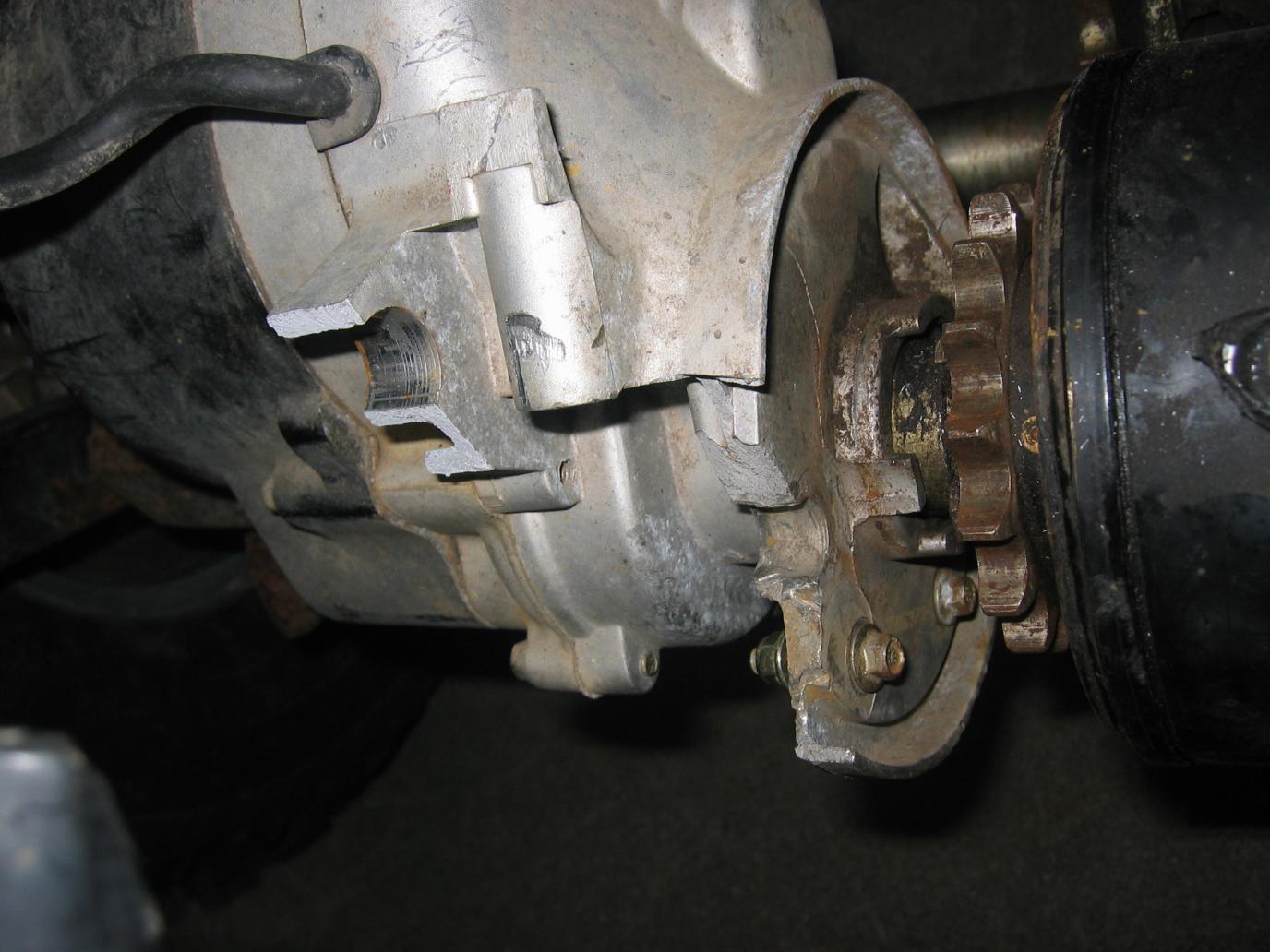 Broken motor mount lug (view from above):