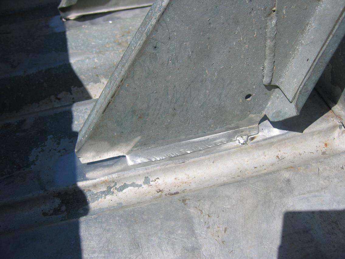 Since the gussets were not a perfect fit to the hull with the new/modified transom, I tack welded the gusset to the hull where it fit tight, and then used a hammer to bend the gusset's welding flange down close to the hull for final welding.
