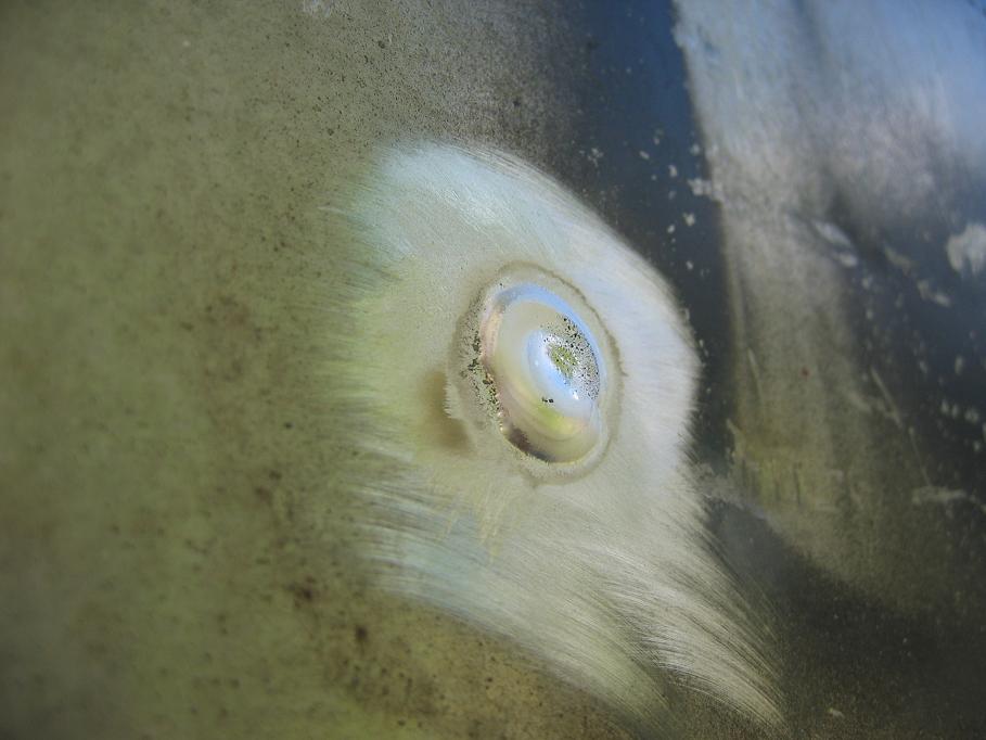 I then welded them up from the outside (inside was not very accessible as it was just behind the wood transom support piece.) It took a lot more welding current than I would have guessed to fill these holes (probably because of the copper backer!)