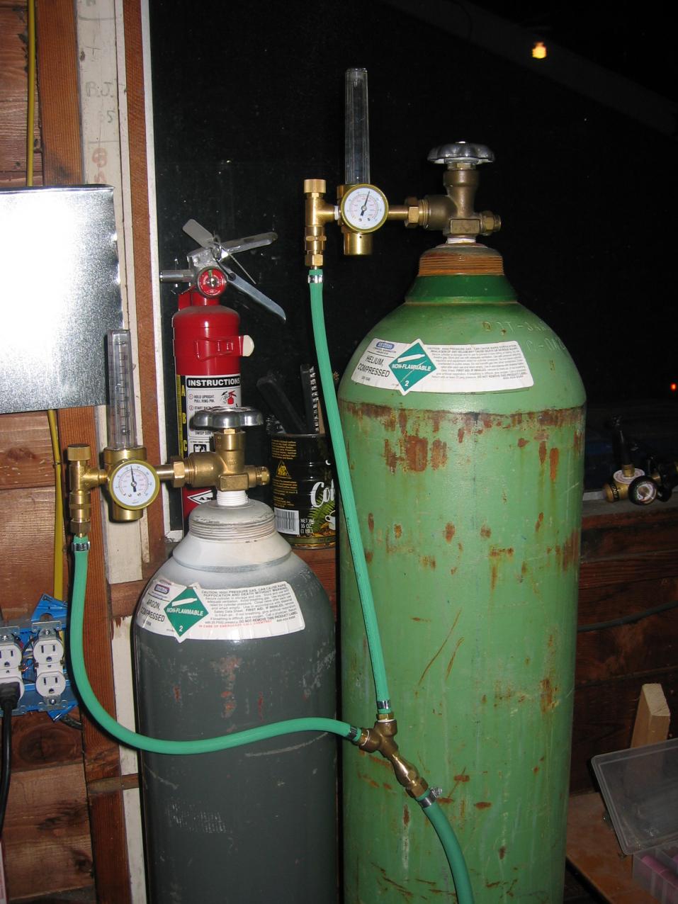 I was hoping to be able to mix the helium and argon with a "Y", but I measured one of my regulators puts out 30 psi and another puts out 50 psi, (so I think that might not work too well.)