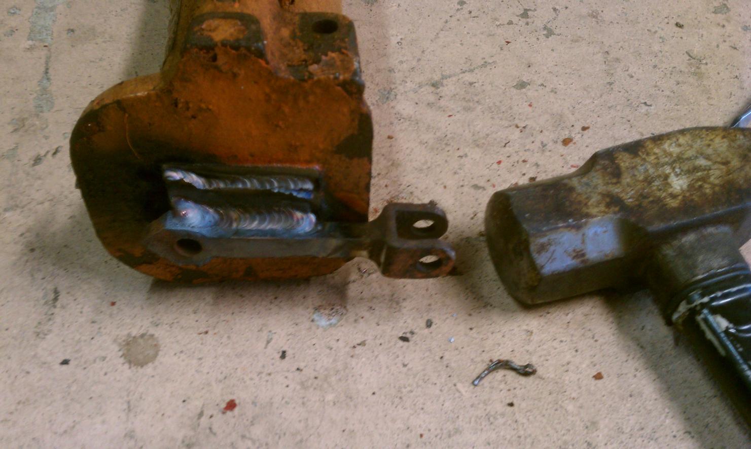 Test 1: ER70 rod, seemed to weld nice, looked decent, however upon striking it with the hammer the weld ripped in half and the piece went flying.......which is bad lol