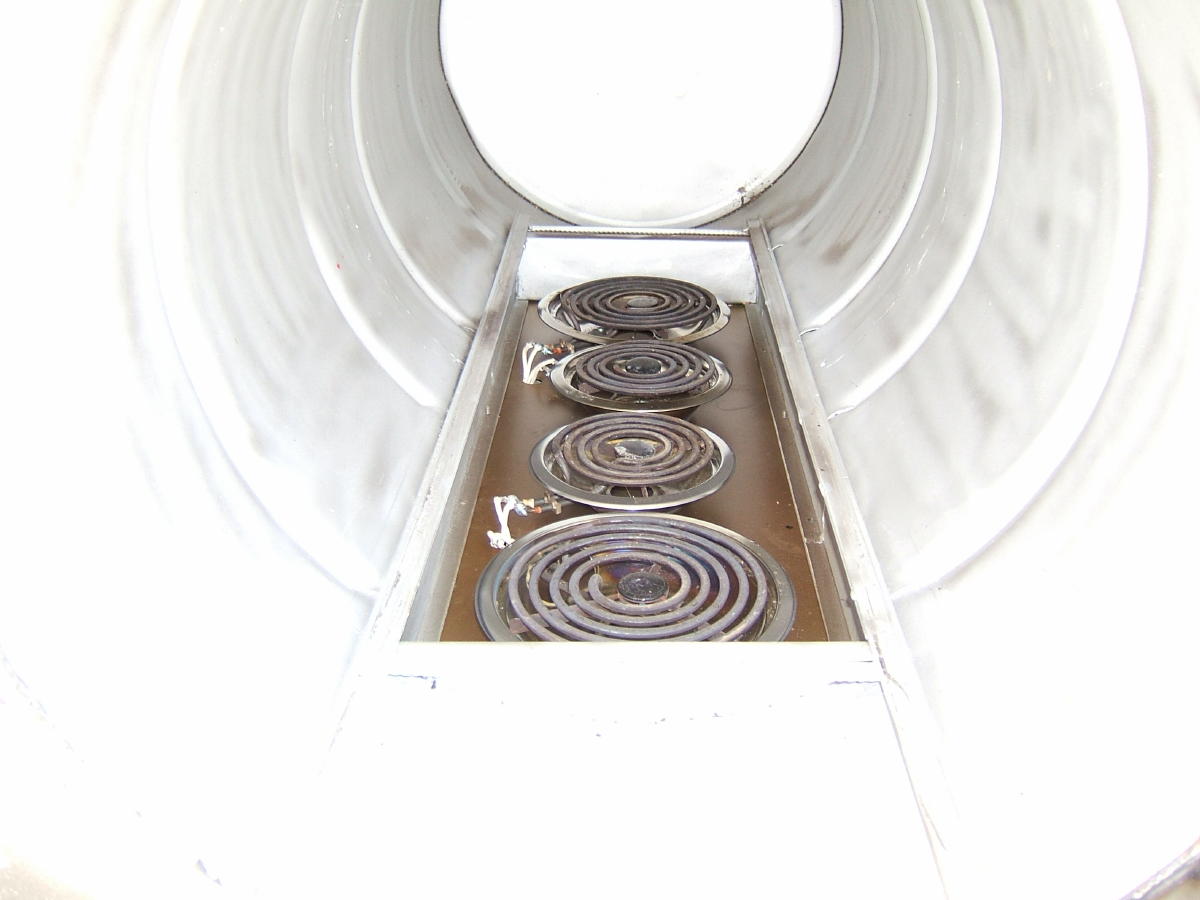 The next question was heating. How would I do this. I took my little oven apart and picked up a convection oven at a garage sale for another 30 bucks and had all the heating elements and controls, plus convection fan that I would need. I then jumped on the internet to find some length of temperature rated wiring and sealing rope for around the door and was ready to start welding and cutting.