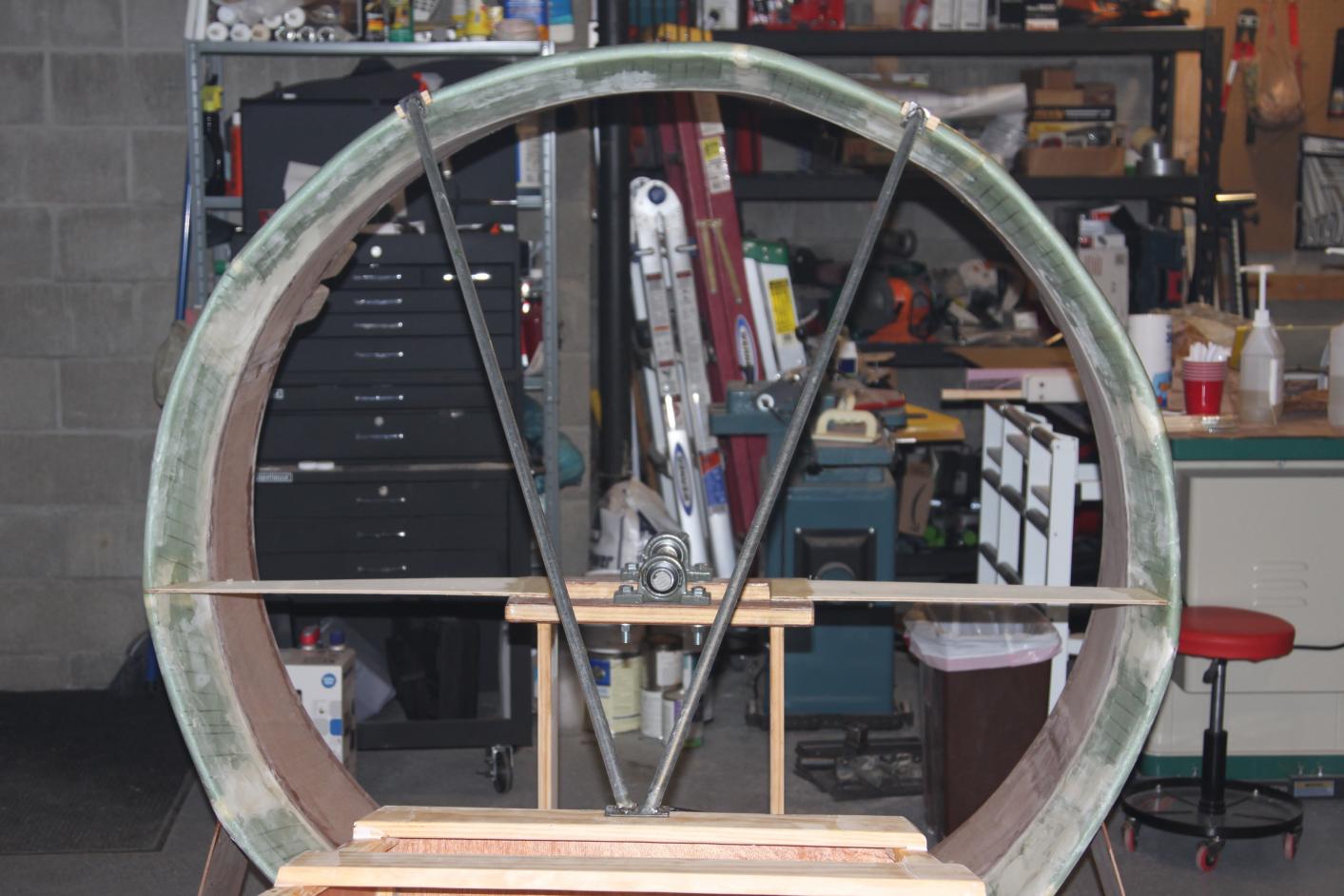 The hovercraft calls for a support at 45 degree angles from the platform that the prop mounts to, to the top of the lift duct. The instructions calls for a number of pieces of aluminum bent to appropriate angles to anchor 1/4" plywood to the platform. The edge on the duct would be fiberglassed as the current horizontal support it.