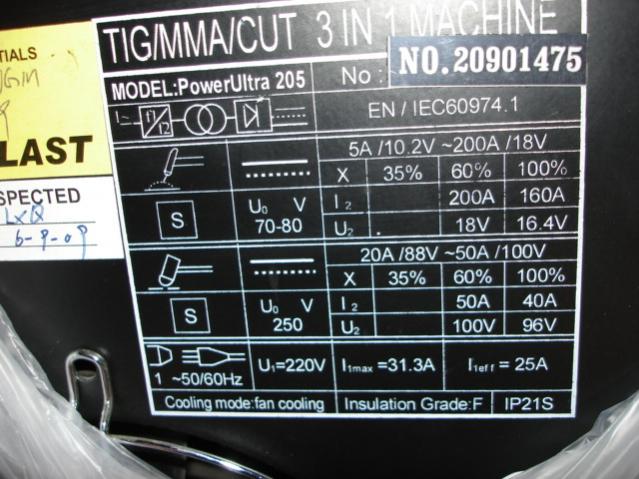 what are the amps this unit draws from a 220 outlet? could not find the specs in the on-line owners manual. I read the plasma cutter mode draws 25 amps. what about the tig/ arc portion of the machine ?