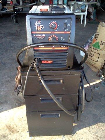 Set welder on cabinet.