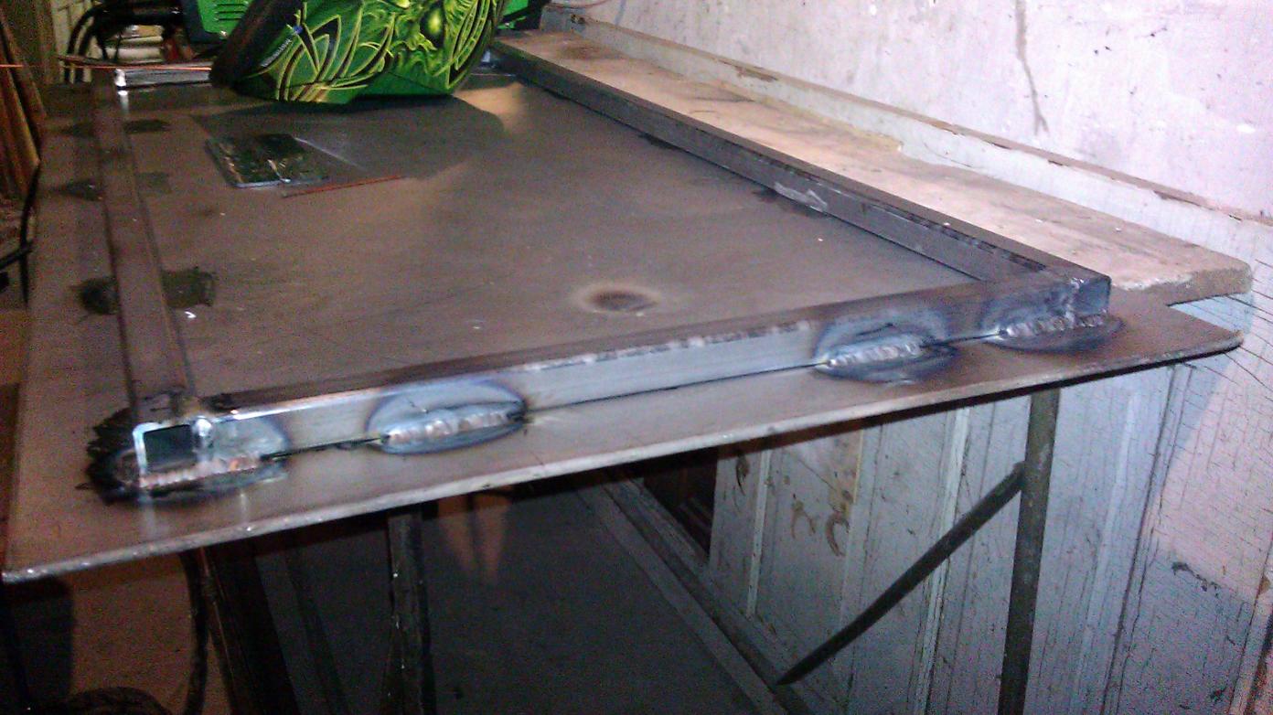 I wanted to make a table that I can move out from my basement and into the garage, had to be light enough and small enough to carry ip a flight of steps, so this is what I came up with. I picked up a 2ft x 4ft 1/4" plate. I had lying around 1x1 square tubing and a 1/8x4 strip for the back kickup. the photo's are self explanatory. This is my 1st time using the Everlast 200DX other then a few bird turds. Im just using the torch on T2 right now till I get a little better.