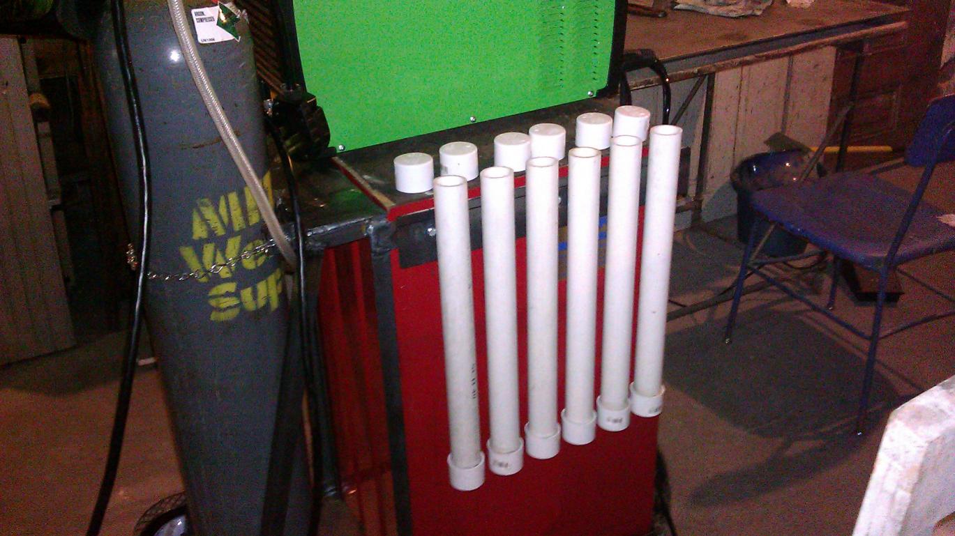 I used pvc to make the tubes, glued caps on the bottom and bolted them to the bracket, cut my filler rod in half to 18"