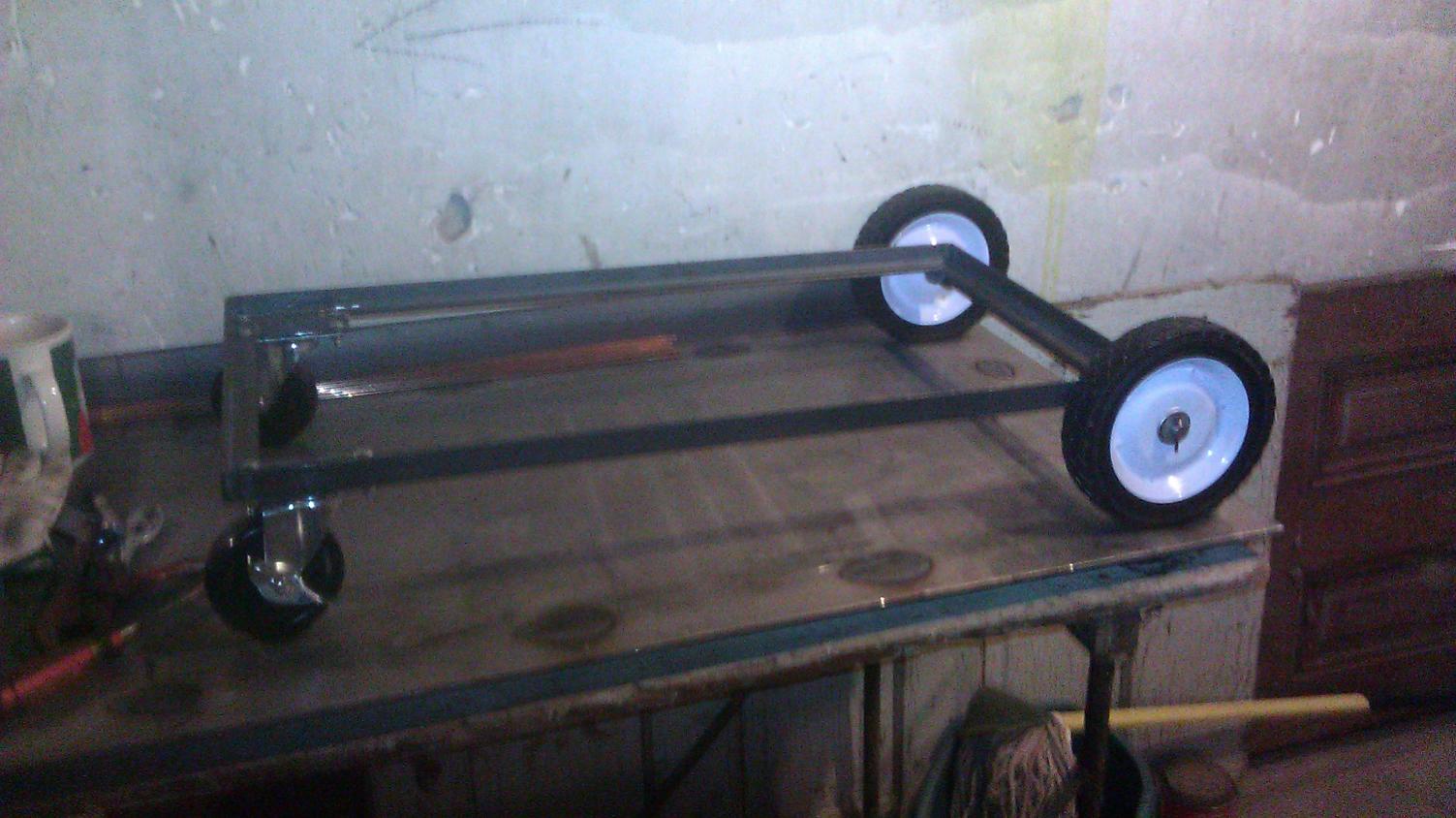 I have a pair of pneumatic wheels but the centers are 5/8 and I picked up 1/2 inch rod, so back to the steel yard tomorrow.