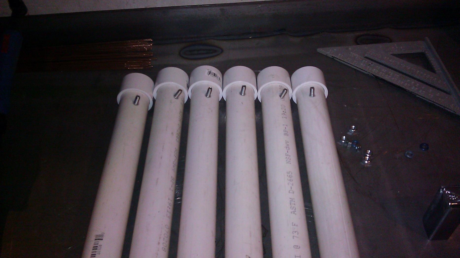 I used pvc to make the tubes, glued caps on the bottom and bolted them to the bracket, cut my filler rod in half to 18"