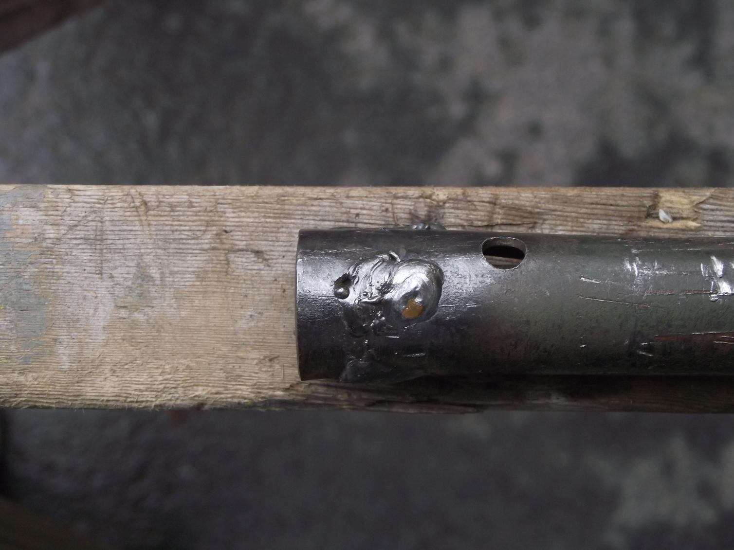 The tube also had openings for welds on opposite sides of the threads: next photos are before and after shots.