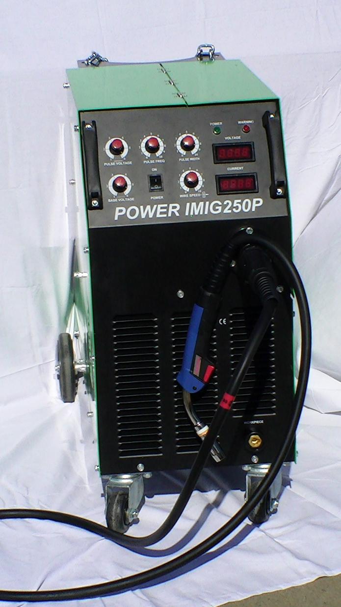 I promised a new reveal soon....Here is our new Power I MIG 250 P. Yes, folks that's right, state of the art pulse Mig technology with 250 amps. Its roll around as you can see. It will hold a full size bottle of Argon and a full 40 lb roll of wire. It uses a name brand Mig Gun, known for its ergonomic feel. It also has burn back, and arc force control to round out the pulse features.