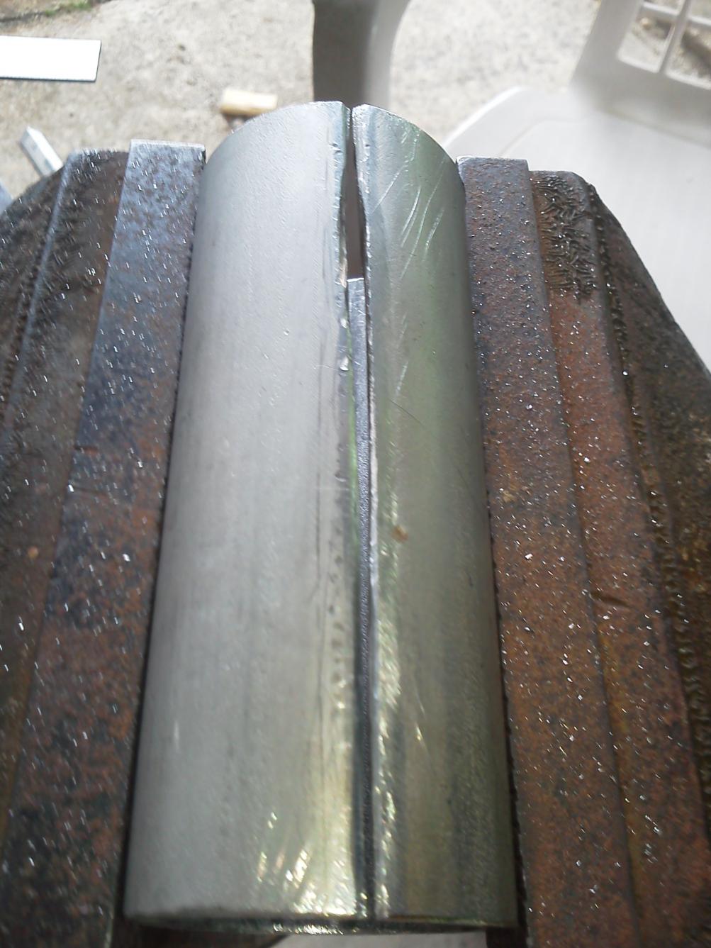 I want to make some telescoping stands and am planning on using SS 1.25” Sch 40 pipe and SS 1” Sch 40 pipe. I have cut the 1.25” pipe to 4” lengths then cut them vertically with a .125” cut-off wheel and need to weld the pipe back together (see pictures). This will give me the tight tolerance I am looking for. The first 1.25” pipe I cut has a gap between .125” - .188”, and the second is .125”. I have read that people use copper as a backing for SS so my plan is to put some solid #4 copper wire on the inside of the 1.25” along the cut and weld the pipe back together. I need the inside of the 1.25” pipe to be smooth so the 1” pipe slides freely.