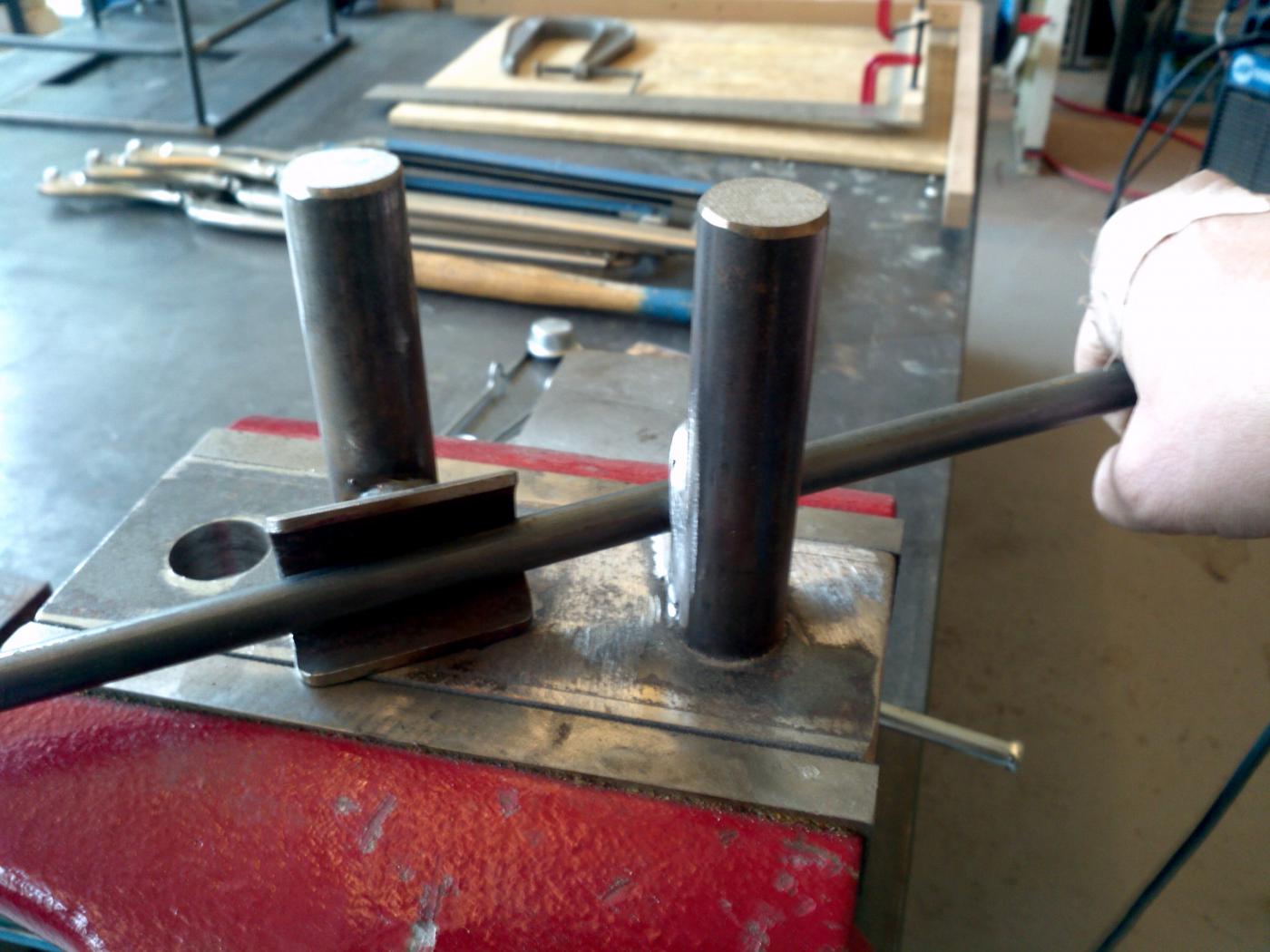 I don't yet have the luxury of a hydraulic pipe bender, but I needed one the other day and this is what I came up with. I have a few bending forks I use when blacksmithing, but they are too small for pipe. I was doing 3/4 and 1" thin wall. Here's what I came up with. I started with some 3" x 3/4" steel flatbar. The jig is about 8" long overall.