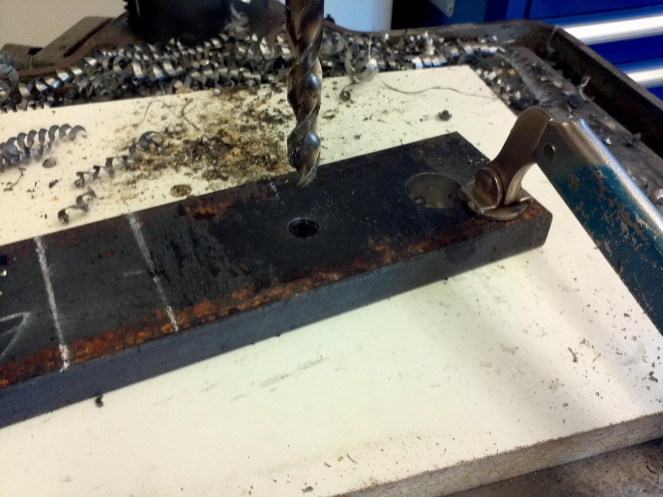 I don't yet have the luxury of a hydraulic pipe bender, but I needed one the other day and this is what I came up with. I have a few bending forks I use when blacksmithing, but they are too small for pipe. I was doing 3/4 and 1" thin wall. Here's what I came up with. I started with some 3" x 3/4" steel flatbar. The jig is about 8" long overall.