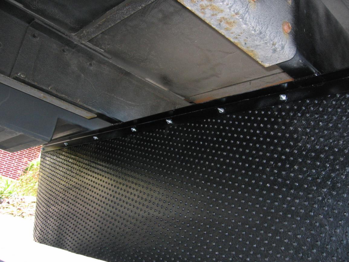 This RV is used to tow a trailer for a roadrace car. The trailer was getting "sandblasted" and the purpose of the wide rear mudflap is to keep this from happening. You can see the thick rubber "mudflap" off to the right in this picture.