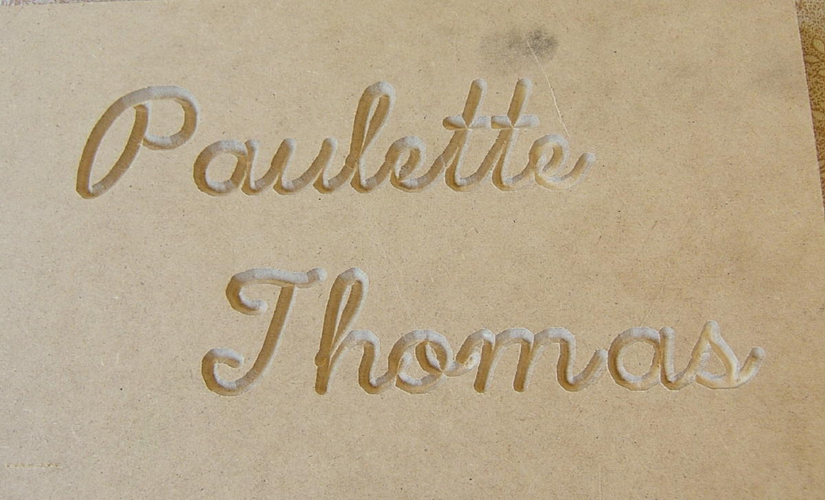 I ran a free program called StickFont v1.1 to lay out names and routed them on some MDF as a test.