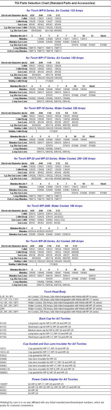 EDIT: Here is a handy chart that cross-references the standard torches with the standard part numbers.