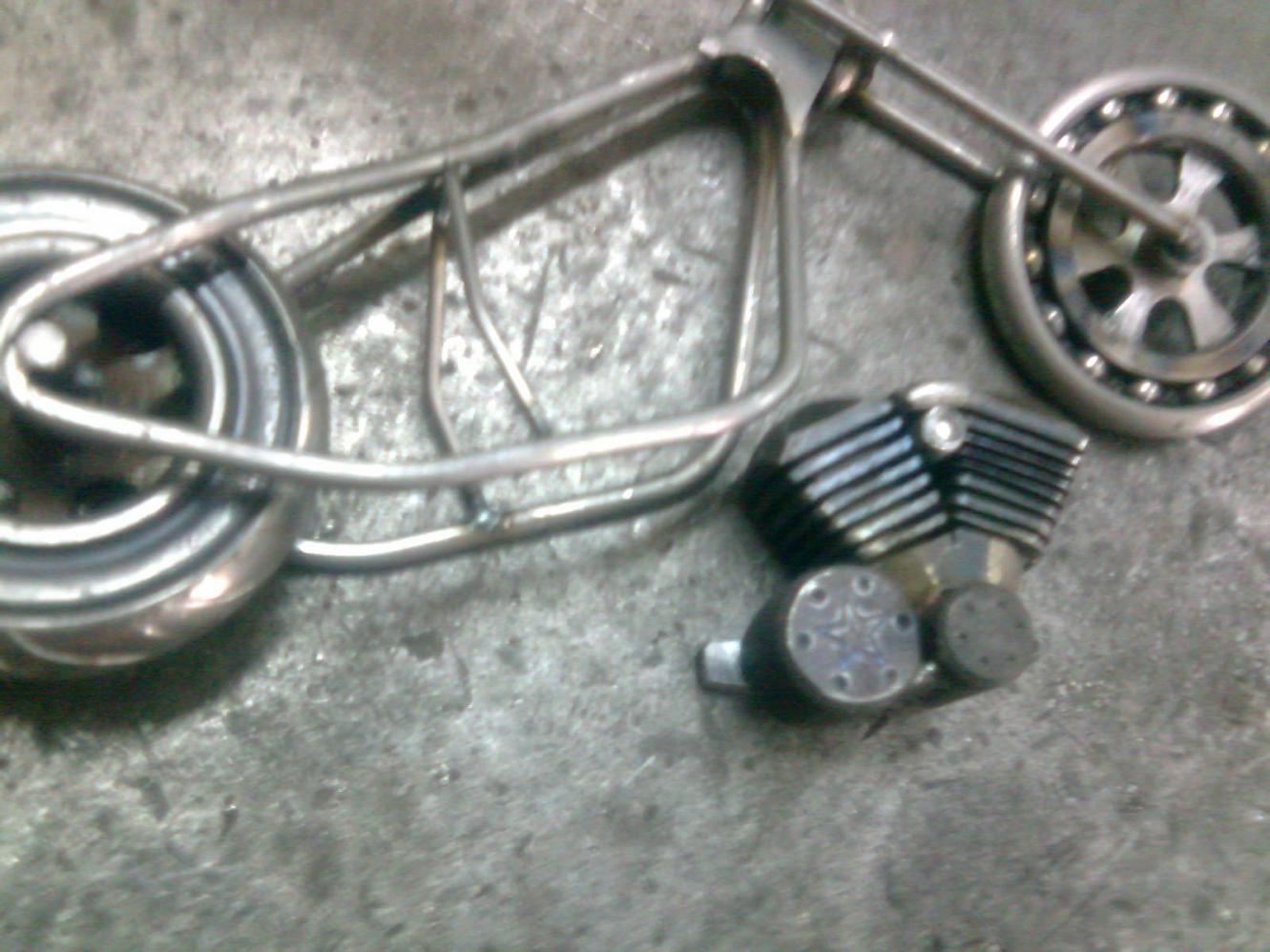 Wow, never would have guess the sprocketBut I was on target with the built order. Like the real thing, just small. Roller, then motor and exhaust, seat pan, tank, fender. Too cool. My none welding son want us to attempt one. Big them for me it wheels.
