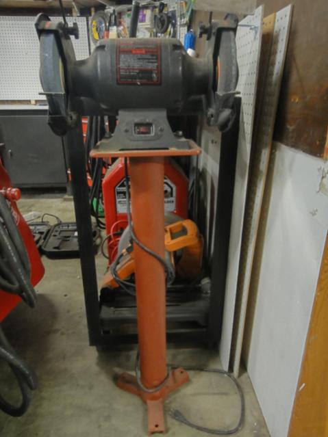 I thought I would post this grinder stand I made a few months back. I had picked up this grinder at a yard sale and it was just lying about. I also had a 34" piece of 3" heavy wall pipe left over, as well as a foot of small 1.5 " channel stock, and about a square foot of 3/8" plate. I made all cuts on this project using the PP60. I cut the channel in three equal sections, then traced out an ovall shape on the plate eight inches by 11 inches and cut. I smoothed the plate on the sander and then welded it to the pipe. Next I drilled a whole in each section of channel on the drill press and then welded them on the stand as a base. I then put on about two and a half coats of Rustoleum primer (one whole can). I plan on bolting it to the floor, just have not gotten around to it yet.
