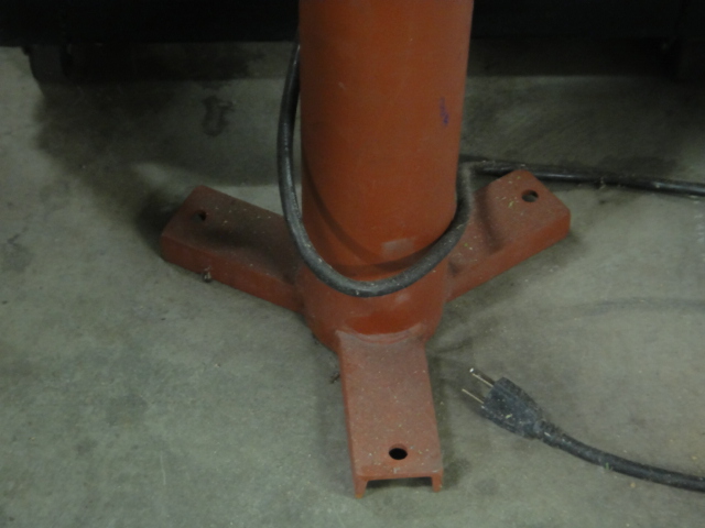 I thought I would post this grinder stand I made a few months back. I had picked up this grinder at a yard sale and it was just lying about. I also had a 34" piece of 3" heavy wall pipe left over, as well as a foot of small 1.5 " channel stock, and about a square foot of 3/8" plate. I made all cuts on this project using the PP60. I cut the channel in three equal sections, then traced out an ovall shape on the plate eight inches by 11 inches and cut. I smoothed the plate on the sander and then welded it to the pipe. Next I drilled a whole in each section of channel on the drill press and then welded them on the stand as a base. I then put on about two and a half coats of Rustoleum primer (one whole can). I plan on bolting it to the floor, just have not gotten around to it yet.