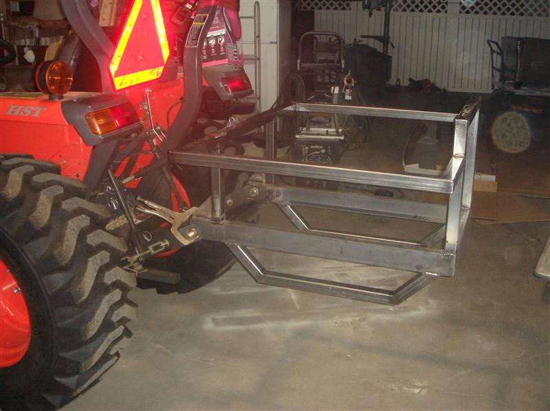 Here is the finished frame attached to the tractor, then lifted on the 3 point. The mounts keep it level at all times. The tank is recycled from another sprayer, it's 100 gallons. Then I added mounts for the equipment, and gave it some paint. The customer likes everything done in white for some reason. Wouldn't be my first choice for somthing like this.