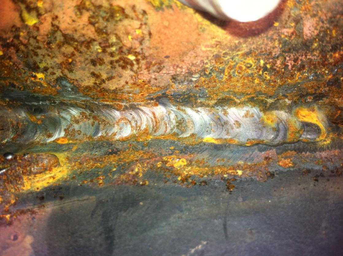 ) It measured .58 - .59 thick. I then used the plasma cutter to mark the holes and then drilled them on the press. All this drag tipping at 50 amps took a tole on the consumables... I then set the 140 at max and tacked the plate on. Once everthing looked good, welded top and bottom.