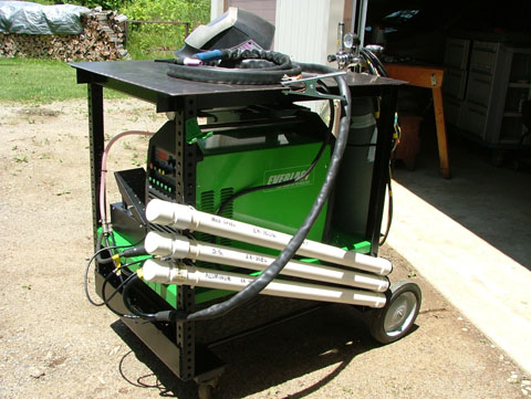 Just got my Power I-MIG 200 the other day and needed a welding cart. I thought about buying one but then thought why when I can build one that doubles as a welding table. So that's what I did. Let me know what you think. Love the welder so far. Can't believe I took this long to buy a MIG welder. I don't think I'll ever go back to flux core again. Well not as long as I can help it.