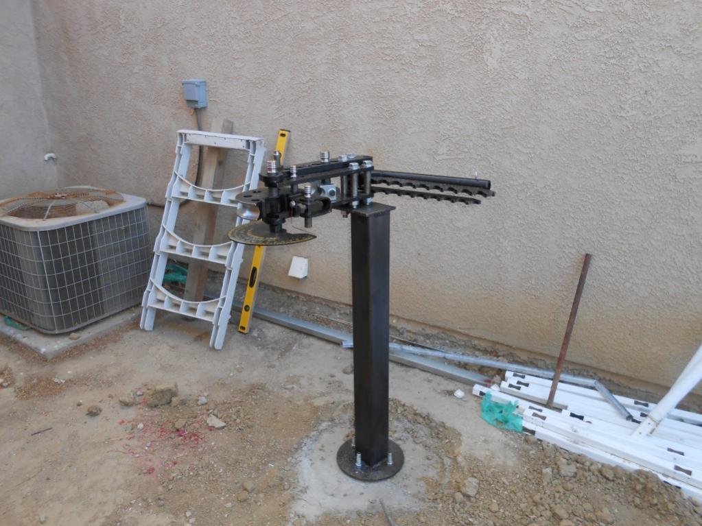 So I picked up a JD Squared Model 32 tube bender, and until I can get the hydraulic ram and all that going I'm going to mount it in the backyard. I live in the Mojave Desert so we get about 2 inches of rain a year. For most of the time I'll have a waterproof bag over it, in the winter I'll probably just unbolt it and bring it inside. Anyway, the stand costs over 100 bucks plus shipping so I decided to make my own. Picked up some raw material from the scrap yard. It sells steel for about 50 cents a pound, so this stand cost me about 18 dollars in scrap steel, 6 dollars for the bolts and 6 bucks for concrete. Add on a can of krylon and I'll be done for about 35 bucks.