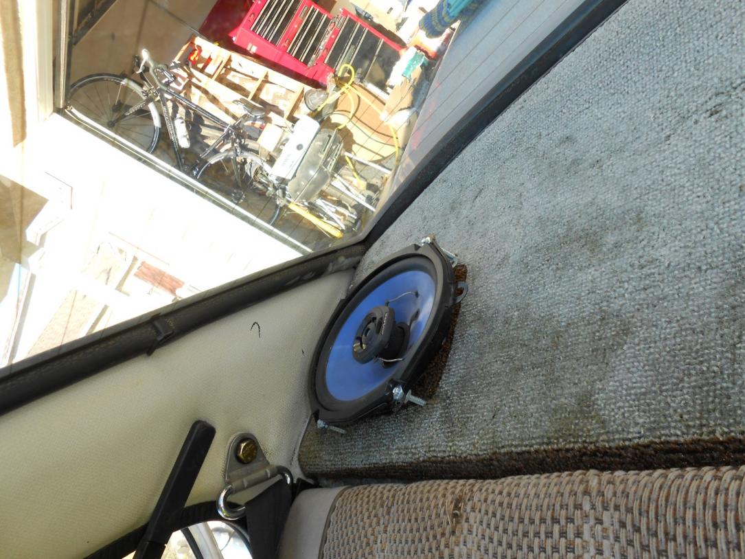 I have a few days off work so I decided to tackle some smaller projects around the house. One of them being installing new speakers into my commuter car. Stock size front and rear speakers are 4x6. I just happened to come into 2 sets of 6x9's and figured I could make em fit. The stock speakers are 30 years old, made of paper, and are cracked to all hell.
