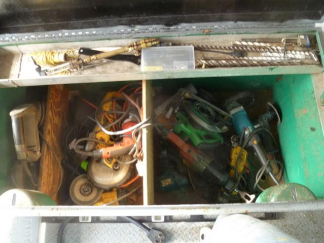 posted once but got logged out while looking for photos. i don't have any with the stock shelf. i generally cut it out when i get a box. have had a lot of them, not much difference between sellers. greeenlee, ridgid or knaack. i remove the shelf because they get in the way. or put in a temporary shelf out of 4 or 6 inch AL channel. the boxes on the trailer and my truck are new but i don't have a pic. they are a good idea if you are going to be in the field. i would not pay more than 150 for a used box in good condition.