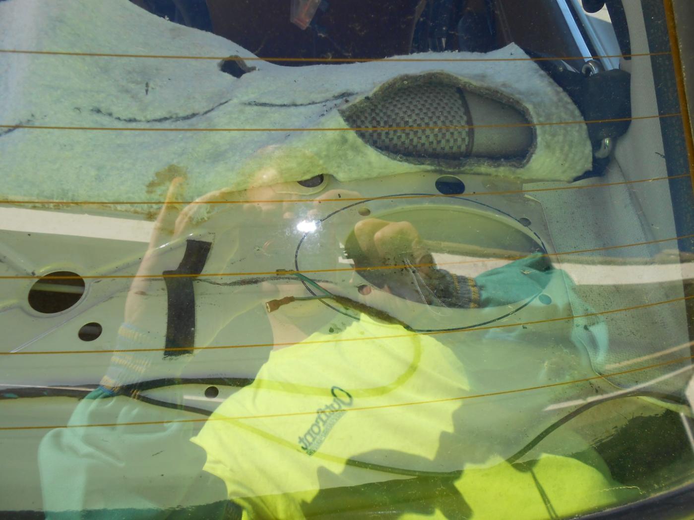 With the carpet back in place and the speaker installed.
