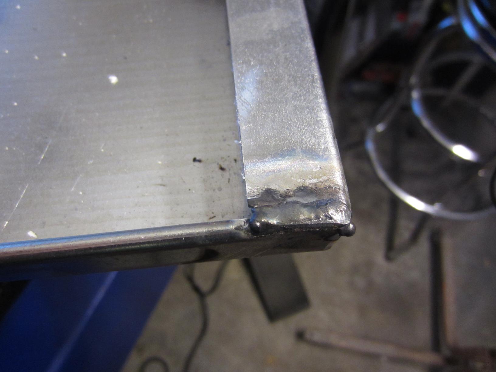 The first pic is my typical slightly hot weld using .035" MIG wire as filler, and the second pic is a slightly cold (not to mention, rough) weld from using the bigger 1/16" carbon steel filler rod. Obviously I was able to at least control the puddle and width of the bead on each of those passes (even if they aren't very pretty).