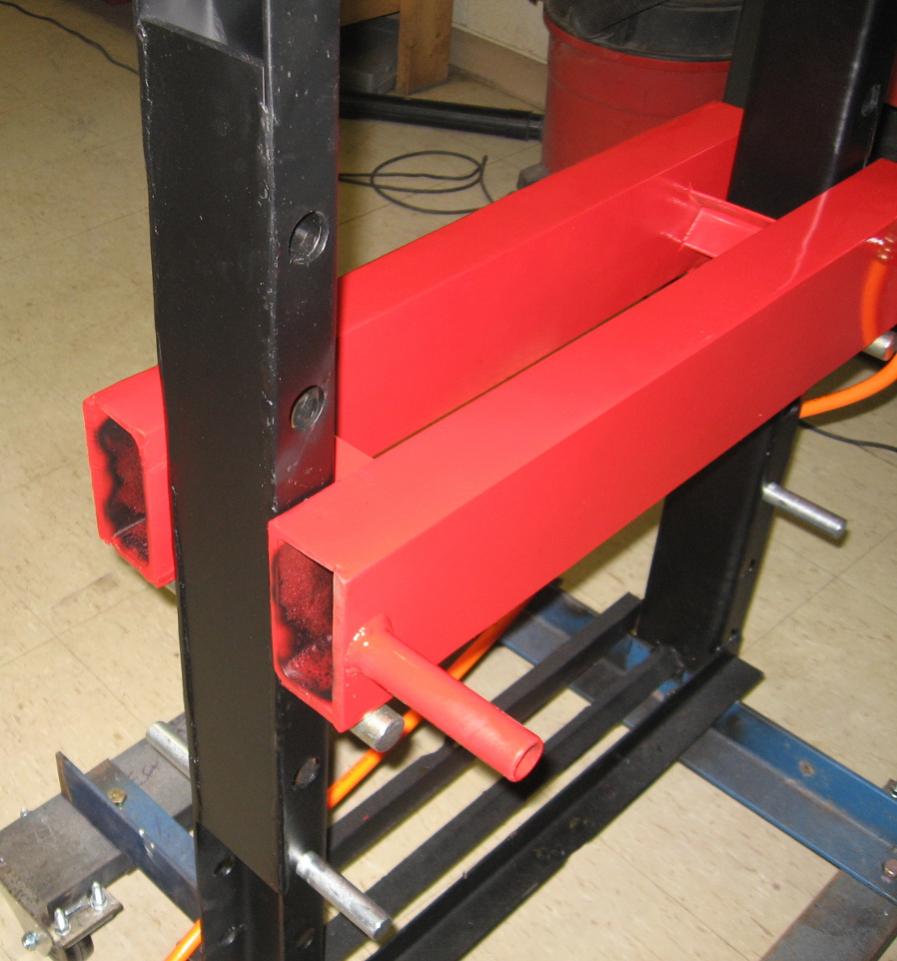 I think I am pretty much done with the Harbor Freight mod to make it a 36 ton press. I did reinforce the side rails and added schedule 40 tubing into the holes which I expanded to 1 inch for the 1 inch x 14 inch grade 8 bolts for the bed pins.