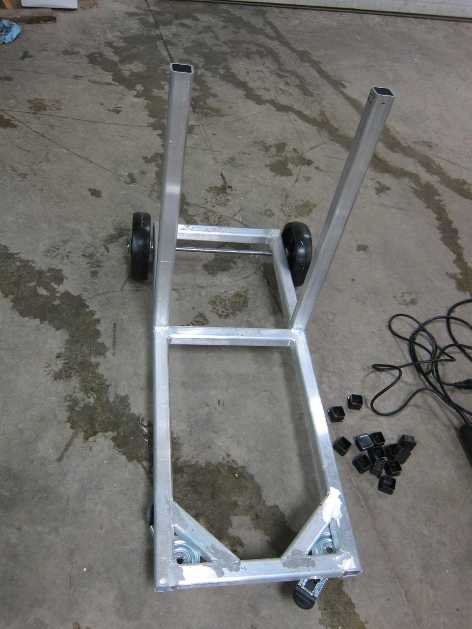 I wanted the basic cart design, but one solid and made from aluminum using 1-1/2" sq tube x 1/8" wall. 1/2" axle shaft.