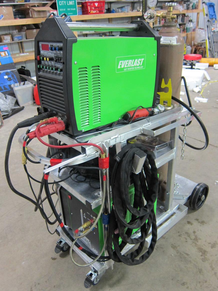 Bought my first house and it came with a 30'x60' shop so time to make a welding cart for my 250EX and not have to worry about making it too compact. During my Xmas vist to the parents in another province I managed to get some "scrap" aluminum from my father, mainly 3/16" sheet & 1" angle. He had a Pro-Tools bender and made me a handle.